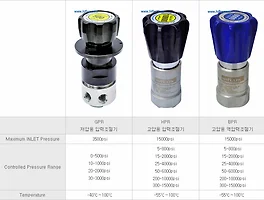 - 당사는 2가지 타입의 압력조정기(GPR, HPR)와 역압력조정기(BPR) 제품을 생산하고 있습니다.