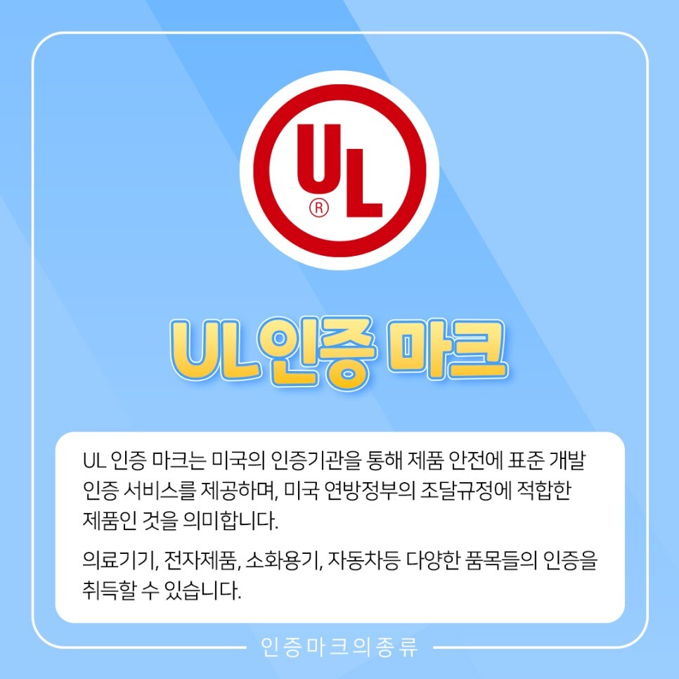 UL 인증 마크는 미국의 인증기관을 통해 제품 안전에 표준 개발 인증 서비스를 제공하며,