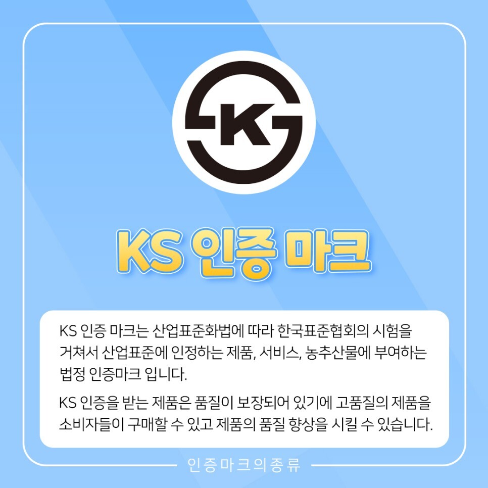 KS 인증 마크는 산업표준화법에 따라 한국표준협회의 시험을 거쳐서